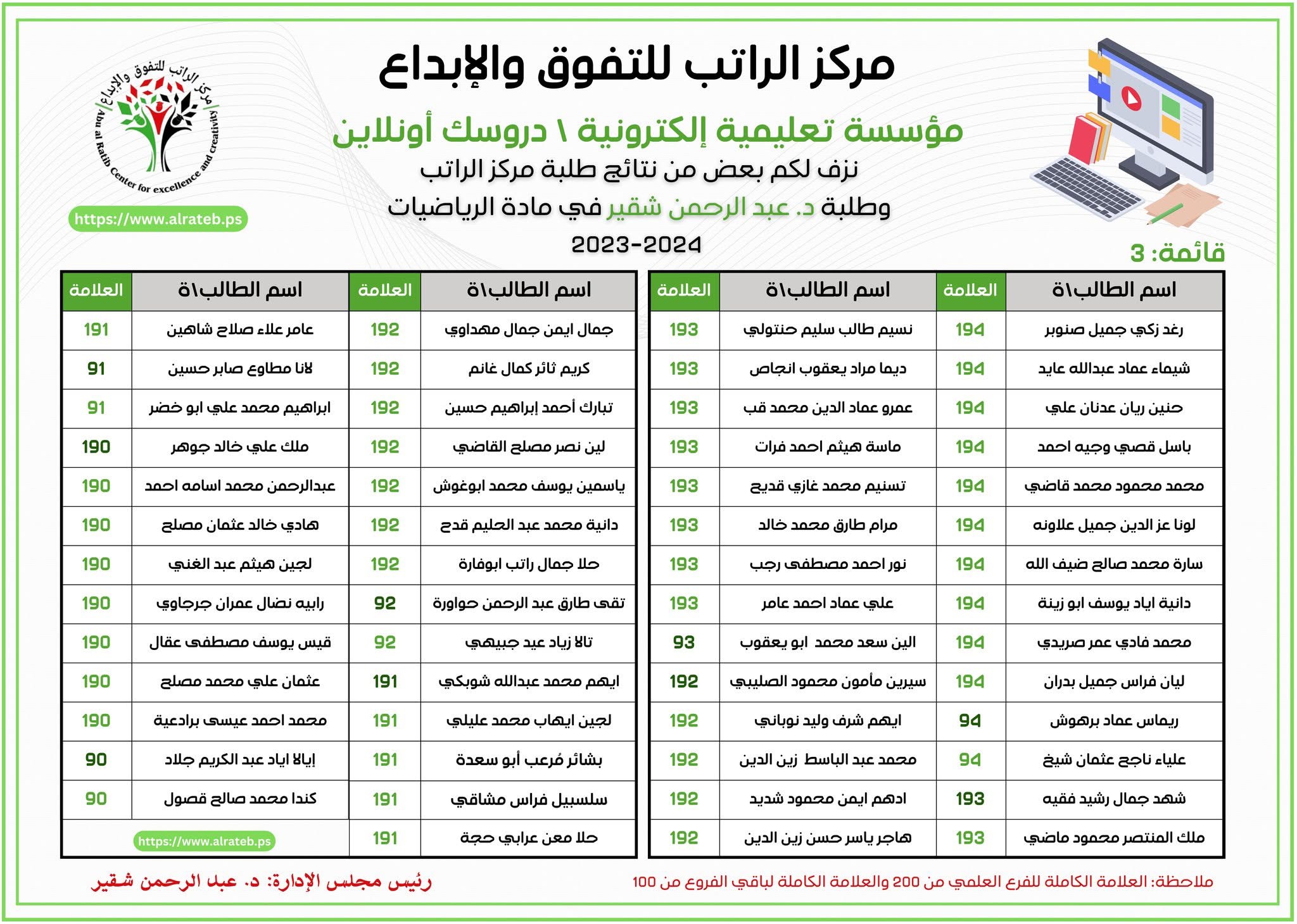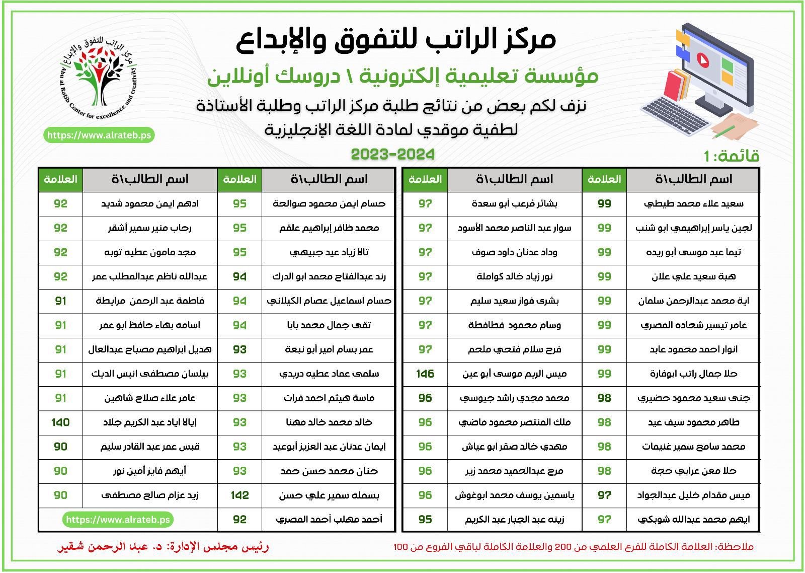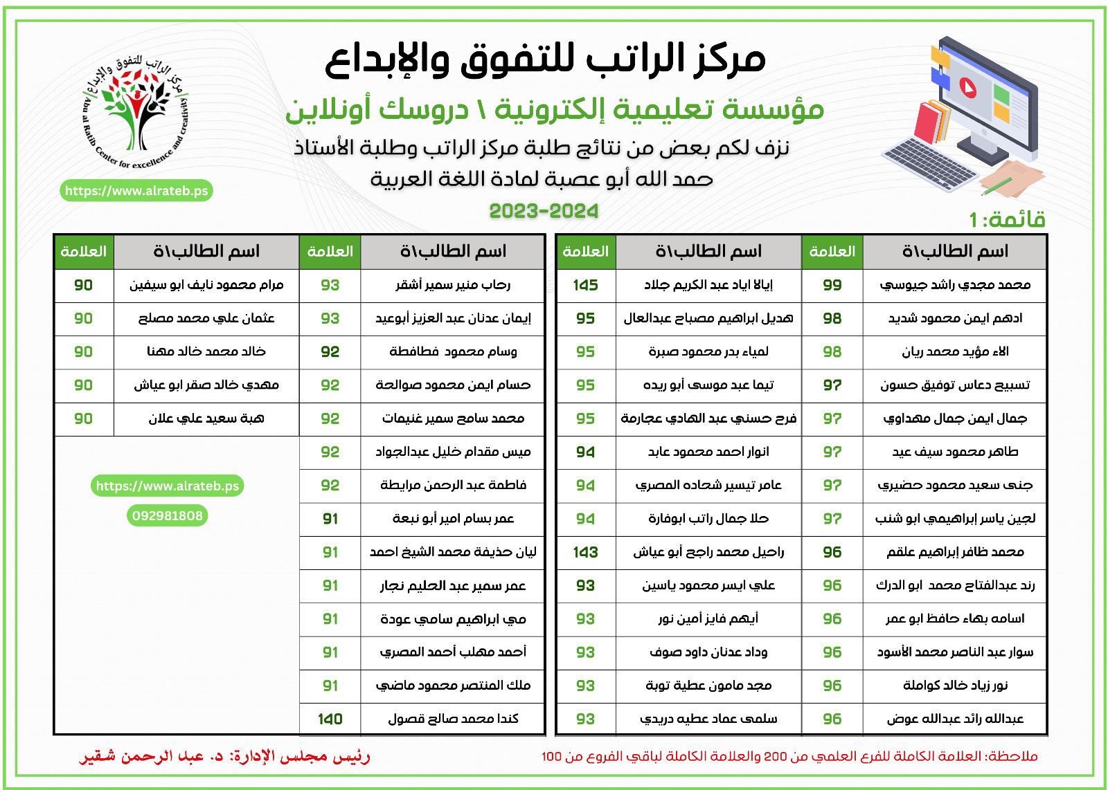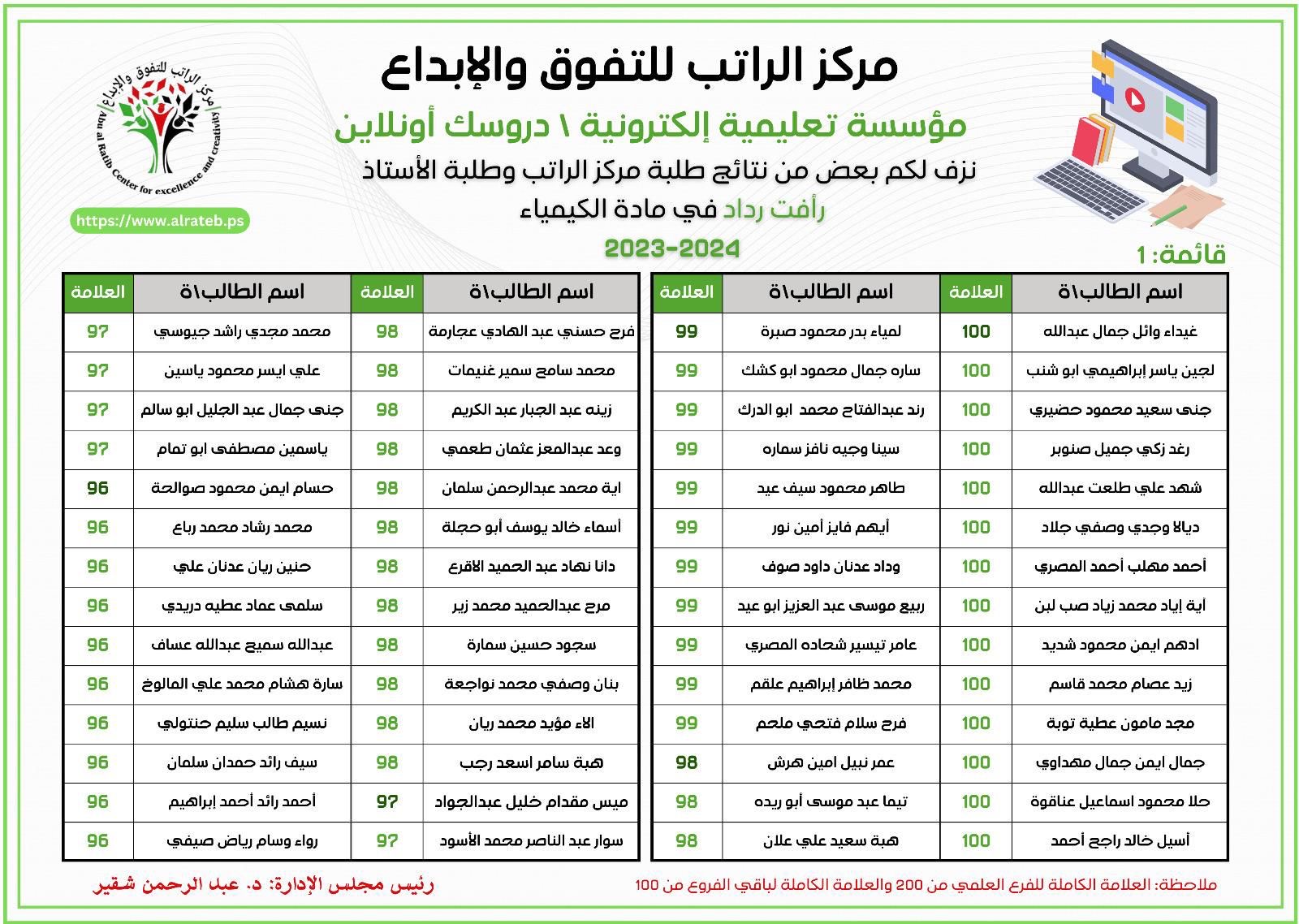لوحة الشرف لمادة التكنولوجيا 2023-2024